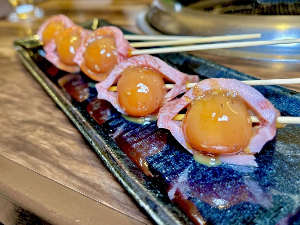 特製のタレに漬け込んだ卵黄を入れた逸品
