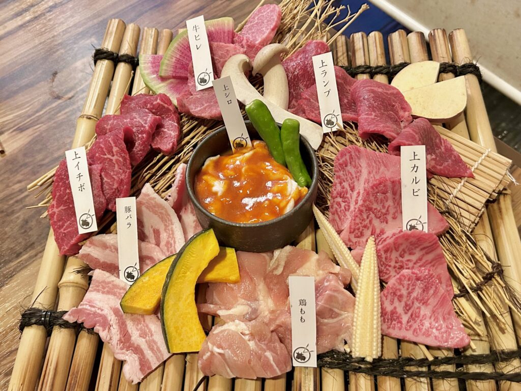 上質な和牛から豚、鳥、ホルモンがセットになった盛り合わせ