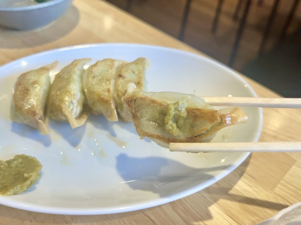小ぶりながらも餡がパンパンに包まれた餃子